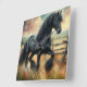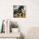 Schwarzer Fresischer Pferdeweiden Rustikaler Zaun Quadratische Wanduhr