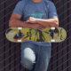 Dieser ursprüngliche abstrakte Kunst Skateboard-Plattformentwurf ist ein Abschnitt von meiner ursprünglichen abstrakten Kunstmalerei. Das Gelb spritzt und rote weiße und grüne Blitze stehen wirklich heraus gegen die schwarzen Formen. dieses ist ein einzigartiger und völlig ursprünglicher moderner Entwurf, der auf diesem coolen kundengerechten Brett nur gesehen werden kann.