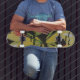 Dieser ursprüngliche abstrakte Kunst Skateboard-Plattformentwurf ist ein Abschnitt von meiner ursprünglichen abstrakten Kunstmalerei. Das Gelb spritzt und rote weiße und grüne Blitze stehen wirklich heraus gegen die schwarzen Formen. dieses ist ein einzigartiger und völlig ursprünglicher moderner Entwurf, der auf diesem coolen kundengerechten Brett nur gesehen werden kann.