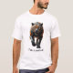 Vorderansicht einer schwarzen Geparden auf der Flucht, zusammen mit den Worten "Ich bin eine coole Katze!". Sie können diesen T - Shirt ganz einfach personalisieren, indem Sie die Wörter durch Wörter Ihrer Wahl ersetzen. Digitales Design, erstellt mit KI.