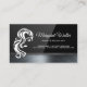 Schwarzer Glanz des Haarlogos | Metallic Trim Visitenkarte. Personalisieren Sie diese Visitenkarte mit Ihren Informationen und Initialen. Boutique-Mode, Schmuckdesigner, Veranstaltungsplaner, Friseur-Stylisten und Beauty-Kosmetiker werden von diesem Design ebenso profitieren wie von der Verwendung von ähnlichen Branchen. Für spezielle Anfragen wenden Sie sich bitte an den Designer. ©2010 Joshua Martin
