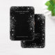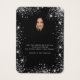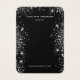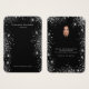 Eine Grafikkarte für Ihren handgefertigten Ohrring oder Schmuck. Ein klassischer schwarzer Hintergrund, weißer Text. Dekoriert mit Imitaten silberner Glitzer Staub. Personalisieren Sie Ihren Namen und Ihre Kontaktinformationen auf der Vorderseite. Zurück: Fügen Sie Ihr Profil-Foto auf der Rückseite ein und nutzen Sie die Möglichkeit, Ihren Kunden die Geschichte Ihrer Marke zu erzählen. Nichtgewollt löschen.