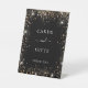 Eine schwarze Hintergrundfarbe. Dekoriert mit Imitaten vergoldeten Glitzer Staub. Mit dem Text: Karten und Geschenke, danke!