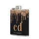Schwarzer Glitzer Tropfen monogramm funkelnd elega Flachmann