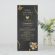 Begleiten Sie Ihre Gäste mit dieser wunderschön gestalteten Hochzeitskarte mit goldenen Blumenakzenten und anmutigen Schmetterlingen auf einem schönen schwarzen Hintergrund. Ideal, um die Zeremonie zu umreißen und Ihre Hochzeitsfeier vorzustellen, fügt diese Karte Ihrem Hochzeitsthema eine Touch von Eleganz und Kontinuität hinzu. Die schimmernden Golddetails und die symbolischen Schmetterlinge erinnern an Schönheit, Transformation und die Freude an neuen Anfängen. Diese Programmkarte ist praktisch und dekorativ und dient als sinnvoller Sake für Ihre Gäste, um lange nach der Feier zu schätzen.