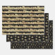 Schöne Goldfolienmuster auf dem Packpapier. Gebäude, Bäume und Schnee. Schwarze goldgelbe urbane Bäume schneebedeckende Papierblätter. Sehen Sie sich unsere Kollektion für mehr tolle Stile und Farben an.