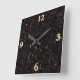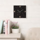 10,75" x 10,75" AcrylWanduhr mit einem Bild des schwarzen Granits mit Goldflecken.