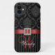 Schwarzer grauer roter Damast Stripes Muster Case-Mate iPhone Hülle