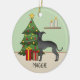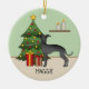 Schwarzer Grauhund Hund mit einem Weihnachtsbaum Keramik Ornament
