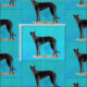 Dieser Stoff zeichnet sich durch eine Reproduktion meiner ursprünglichen Ölgemälde eines schwarzen Windhund stehend.
