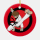 Schwarzer Gurt-Karate/Ninja brünetter Junge Keramik Ornament