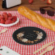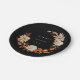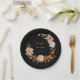 Schwarzer Herbst Hochzeitspapier-Teller. Diese eleganten Hochzeitsapplikationen sind mit handbemalten, in Aquarellen gebrannten Orange- und Terrakotta-Blätter, cremefarbenen und beigen Dahlien sowie mit rostfarbenen Rose auf schwarzem Hintergrund mit dem Vornamen und dem Hochzeitsdatum der Braut und des Bräutigams ausgestattet. Finden Sie passende Artikel in der Black Herbst Romance Collection.