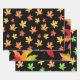 Schwarzer Hintergrund der Ahornleaf-Muster Geschenkpapier Set