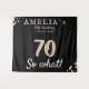 Inspiration 70. Geburtstagsparty Schwarz Hintergrund. Funny und inspirierend Zitat 70 so was für ihn oder für sie. Nutzen Sie die Tapisserien als Hintergrund für die 70. Geburtstagsparty. Personalisieren Sie es mit Ihrem Namen, Datum und Alter.