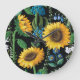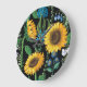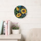 Schwarzer Hintergrund Sonnenblumenmuster Große Wanduhr