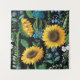 Schwarzer Hintergrund Sonnenblumenmuster Wandteppich