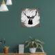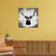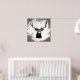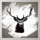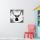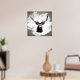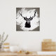 Schwarzes Hirsch über einem weißen grafisch geformten Poster.