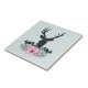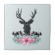 Schwarzer Hirschkopf mit rosa Blume und Berge Fliese