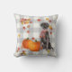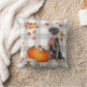 Schwarzer Hund mit Pumpkins Fallende Blätter Graue Kissen