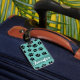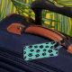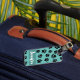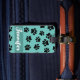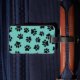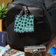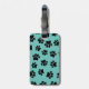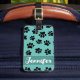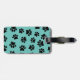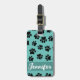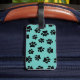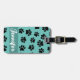 Schwarze Hundepflaster druckt auf aquamarinem Hintergrund. Cartoon-Muster für Hundefreunde. Benutzerdefinierte Gepäckanhänger. Bearbeiten Sie den Namen, um dieses Tag personalisiert zu machen. Geschenkidee.