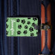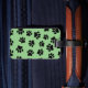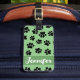 Schwarze Hundepuhe druckt auf schlauer Farbhintergrund. Cartoon-Muster für Hundefreunde. Benutzerdefinierte Gepäckanhänger.. Bearbeiten Sie den Namen, um dieses Tag personalisiert zu machen. Geschenkidee.