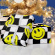 Schwarz-Happy-Gesicht Karo Groovy , Schachbrett, Schachbrett-Board, Happy-Gesicht-Muster, Happy-Gesicht, Retro, Vintag, Groovy, Nieren