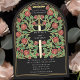 Set den Ton für deine mittelalterliche Fantasy-Hochzeit mit einem kühnen Bogen-Einladung-Design - ein großes Schwert umgeben von Blumen und goldene Akzente vor einem schwarzen Hintergrund. Ideal für Paare, die von einer epischen, romantischen Feier träumen. Machen Sie Ihre Liebe von Anfang an legendär! HINWEIS: Das Gold in diesem Design ist KEINE echte Folie.