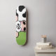 Blushing Kuh Skateboard Deck. Das Design ist eine peinliche schwarz-weiße Kuh auf grünem Hintergrund. Ideal für Mädchen Skater. Copyright © Lisa Marie Robinson Alle Rechte vorbehalten.