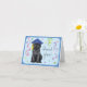 Senden Sie Dank für Ihr Abschlussgeschenk mit diesem Entwurf, der einen niedlichen, glücklichen schwarzen Labrador-Retrieverabsolvent kennzeichnet, der einen Mortarboard unter einer Aufregung von Confetti trägt.