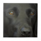 Keramik-Fliese mit einem nahen hohen/MakroFoto schwarzen Labrador-Retrievers verfolgt Gesicht.