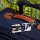 Schwarzer Labrador mit blauem Faszinator Gepäckanhänger