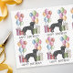 Desteis originelle Cartoon-Illustration eines niedlichen schwarzen Labrador Retriever Zuchthundes. Der Hund wird in einer bunten Geburtstagslandschaft mit pastellfarbenen Geburtstagsballons und Geschenken platziert. Die Pastellfarben Rosa, Grün, Blau, Rot, Orange und lila. Der Hintergrund hat ein spielerisches pastellfarbenes Polka-Punktmuster. Es gibt auch einen personalisierbaren Textbereich, der nun lautet: "Glücklich zum Geburtstag!". Das Design wird sechsmal platziert und erzeugt ein kleines Muster.