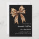 Ein klassischer schwarzer Hintergrund, mit einem großen Bogen mit Leopardenprint dekoriert. Personalisieren und fügen Sie einen Namen und Party-Details hinzu.