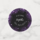 Ein klassischer schwarzer Hintergrund mit Glitzer in lila, dunklen Imitaten, Glitzern. Personalisieren und fügen Sie Datum, Name, Alter und ein Foto hinzu.