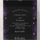 Ein trendiger schwarzer Hintergrund mit glitzernden lila Imitaten Glitzer Staub. Personalisieren und fügen Sie Ihre Namen, Monogramm und Hochzeitsdetails. Weiße Buchstaben.