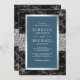 Schwarzer Marmor Silver Dusty Blue QR Code Wedding Einladung