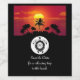 Silhouette der Schwarzmeerschildkröte unter einem Diamantmonogramm. Über dem Reptil befindet sich ein Palmenbild am Strand, das bei Sonnenuntergang in einer Silhouette gemacht wird. Das Foto kann durch einen eigenen ersetzt werden. Eine Idee für ein Party am Strand; vielmehr ist es ein Geburtstag, eine Junggesellenabend oder einfach nur ein erholsamer Tag am Strand oder am Meer.