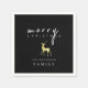 Moderne, minimalistisch schwarz-weiße Weihnachtsservietten mit handgemalten Aquarellgolden-Rentieren und moderner Typografie. Persönlich für stilvolle Tischdekoration