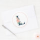 Schwarzer Monogram Letter L mit rosa Blume Runder Aufkleber