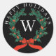 Schwarzer Monogramm-Kranz für personalisierte Feie Runder Aufkleber