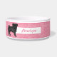 Schwarzer Mops Cartoon Mops auf rosa Herzen mit Na Napf