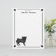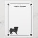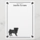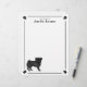 Desteis originelle Cartoon-Illustration eines bezaubernden schwarzen Mantel Farbe Mops züchten Hund. Der Hund ist stehend und schaut zum Betrachter. Der Schwanz ist oben auf dem Rücken des Hundes gefräst. Der Mund des Hundes ist geschlossen und die Augenfarbe braun. Der Hund wird in einer Ecke platziert, und das Design ist durch Rahmen gerahmt, die in jeder Ecke einen Hundepflaster drucken. Oben befinden sich zwei personalisierbare Textbereiche.