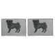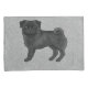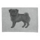 Desteis originelle Cartoon-Illustration eines bezaubernden schwarzen Mantel Farbe Mops züchten Hund. Der Hund ist stehend und schaut zum Betrachter. Die Hintergrundfarbe ist grau mit einer hellen dekorativen Textur, die entfernt werden kann, wenn es gewünscht.