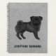 Desteis originelle Cartoon-Illustration eines bezaubernden schwarzen Mantel Farbe Mops züchten Hund. Der Hund ist stehend und schaut zum Betrachter. Die Hintergrundfarbe ist grau mit einer hellen dekorativen Textur, die entfernt werden kann, wenn es gewünscht. Es gibt auch einen personalisierbaren Textbereich für einen Namen oder einen anderen benutzerdefinierten Text.