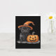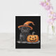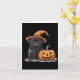 Schwarzer Mops mit Hexenhut und KürbisHalloween-Mo Karte