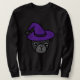 Schwarzer Mops mit Lila Hexenhut und Spider Friend Sweatshirt