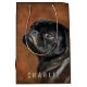 Schwarzer Mops Dog Portrait.Ein wunderschöner und hübscher schwarzer Mops Dog digitales Ölgemälde Portrait. Tragen Sie ein gestreiftes Shirt und geben Sie einen Seitenblick/Wal-Blick, mit dunkelgrunbraunem Hintergrund. Reiche neutrale, erdfarbene Farben mit einem rustikalen und bedrückten Aussehen. Möpsen haben trotz ihrer geringen Größe eine bemerkenswerte und charmante Persönlichkeit. Bereit, personalisiert zu sein, fügen Sie einfach Ihren Namen.