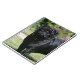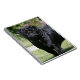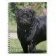 Schwarzer Mops-stehende schauende Kamera Notizblock