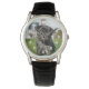 Uhr, Klassische Damenuhr mit schwarzen Lederarmband