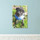 Schwarzer Mops Welpe mit einer Jacke Leinwanddruck